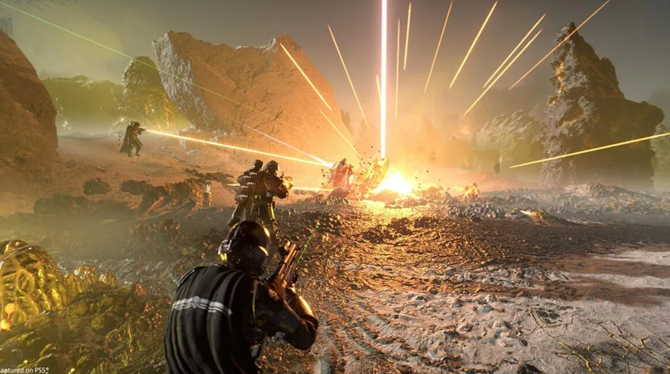 Helldivers 2 (PS5) — кооперативный шутер про борьбу за «управляемую демократию» в космосе. Динамичные бои, до 4 игроков и тонны юмора.